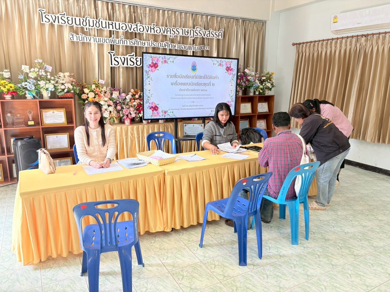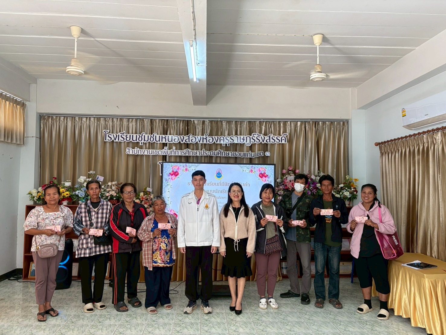 วันพฤหัสบดี ที่ 20 พฤศจิกายน 2568 ดร.นวลลออ พลรักษา ผู้อำนวยการโรงเรียนชุมชนหนองสองห้องคุรุราษฏร์รังสรรค์ มอบหมายให้ นางศศิธร นาอุดม และนายศิริวัสส์ ปิยกุลมาลา รองผู้อำนวยการโรงเรียน มอบเงินค่าเครื่องแบบนักเรียน (เพิ่มเติม) ชุดที่ 2 โครงการสนับสนุนค่าใช้จ่ายในการจัดการศึกษาฯ เรียนฟรี 15 ปี ประจำปีการศึกษา 2568 โดยมีนักเรียนระดับชั้นประถมศึกษาปีที่ 1-6 ได้รับค่าเครื่องแบบ จำนวน 64 คน